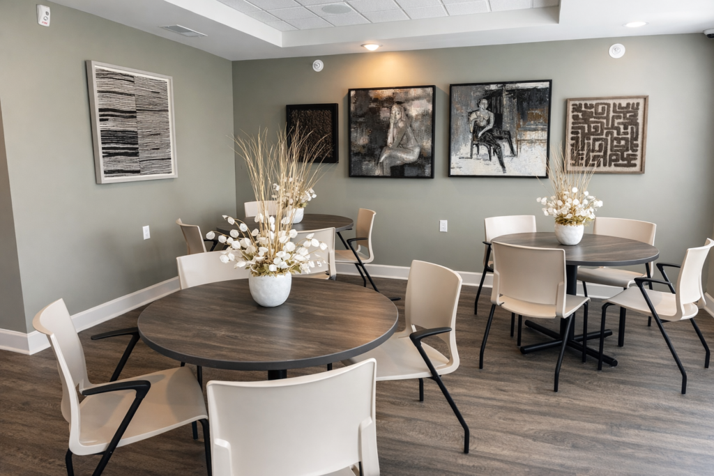 - Community room with modern kitchen